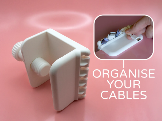 Stop the daily struggle of searching for cables that have slipped behind your desk! This innovative, 3D printed cable organizer clamps securely to your workspace, keeping all your essential cords neat, accessible, and exactly where you left them.