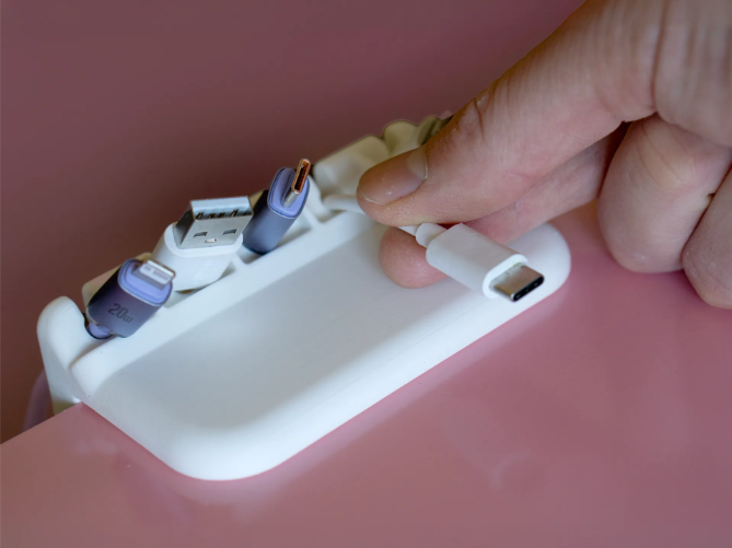 📱 Universal Fit: The flexible slots are designed to hold most common cable types, including USB-C, Lightning, USB-A, and more.
