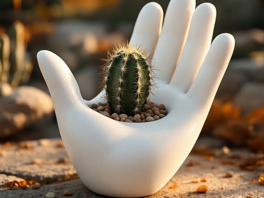 🌵 Perfect for Small Plants: An ideal and unique home for succulents, cacti, and air plants, cradling them in its palm. (Please note, the plant is not included).