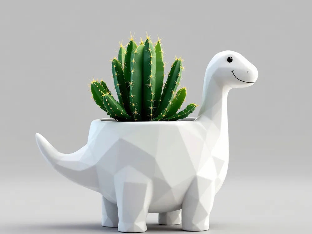 Add a touch of prehistoric charm to your modern world! This adorable geometric dinosaur planter is the perfect friendly giant to watch over your favorite succulents and cacti. Its unique low-poly design and cheerful smile make it a standout piece in any room.