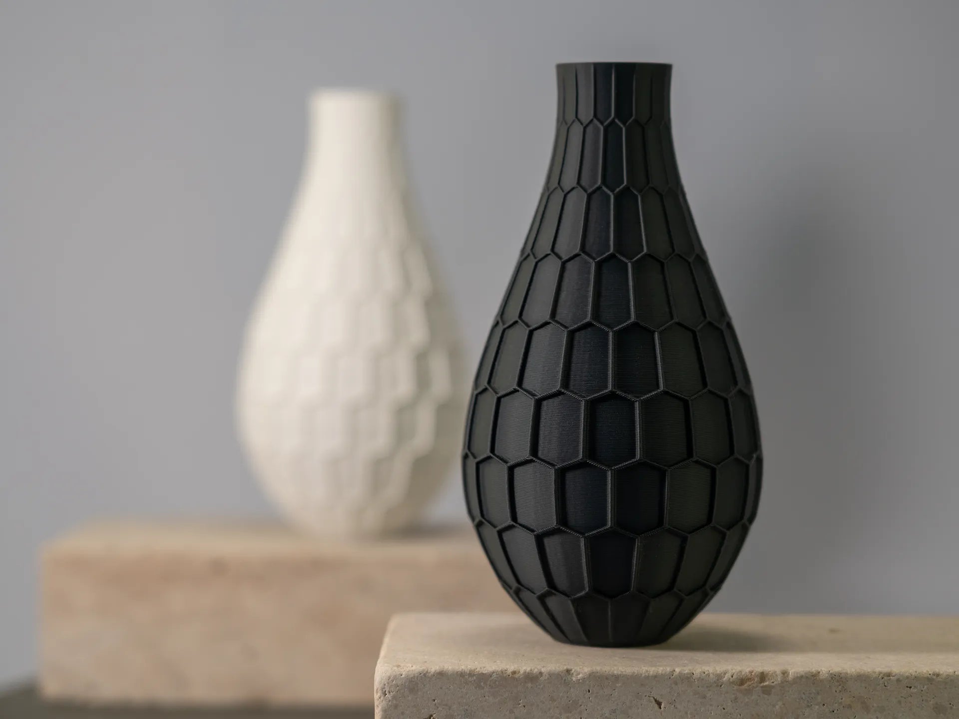 Each Hexagon Vase is meticulously crafted using advanced 3D printing technology. This process allows for a level of detail and a lightweight, durable structure that traditional methods can't replicate. Made from high-quality, eco-friendly material, it’s a piece of modern craftsmanship for your home.