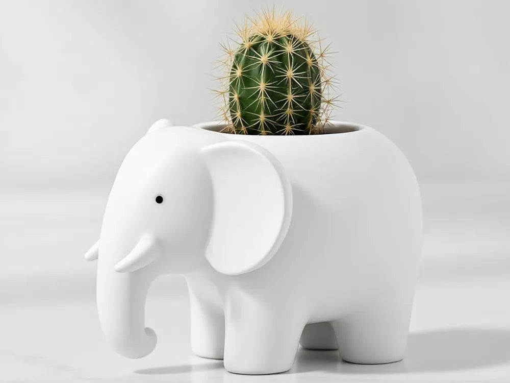 Introduce a gentle giant to your plant family! Our minimalist 3D printed elephant planter is a beautifully simple and modern home for your cherished succulents and cacti. It's a touch of serene style for any corner of your space.
