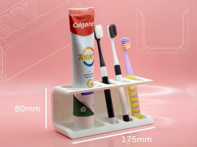 With space for up to four toothbrushes and a standard tube of toothpaste, it's the perfect organizer for couples or families. Each holder is meticulously 3D printed from high-quality, durable, and easy-to-clean material, ensuring it will be a long-lasting and functional addition to your bathroom.