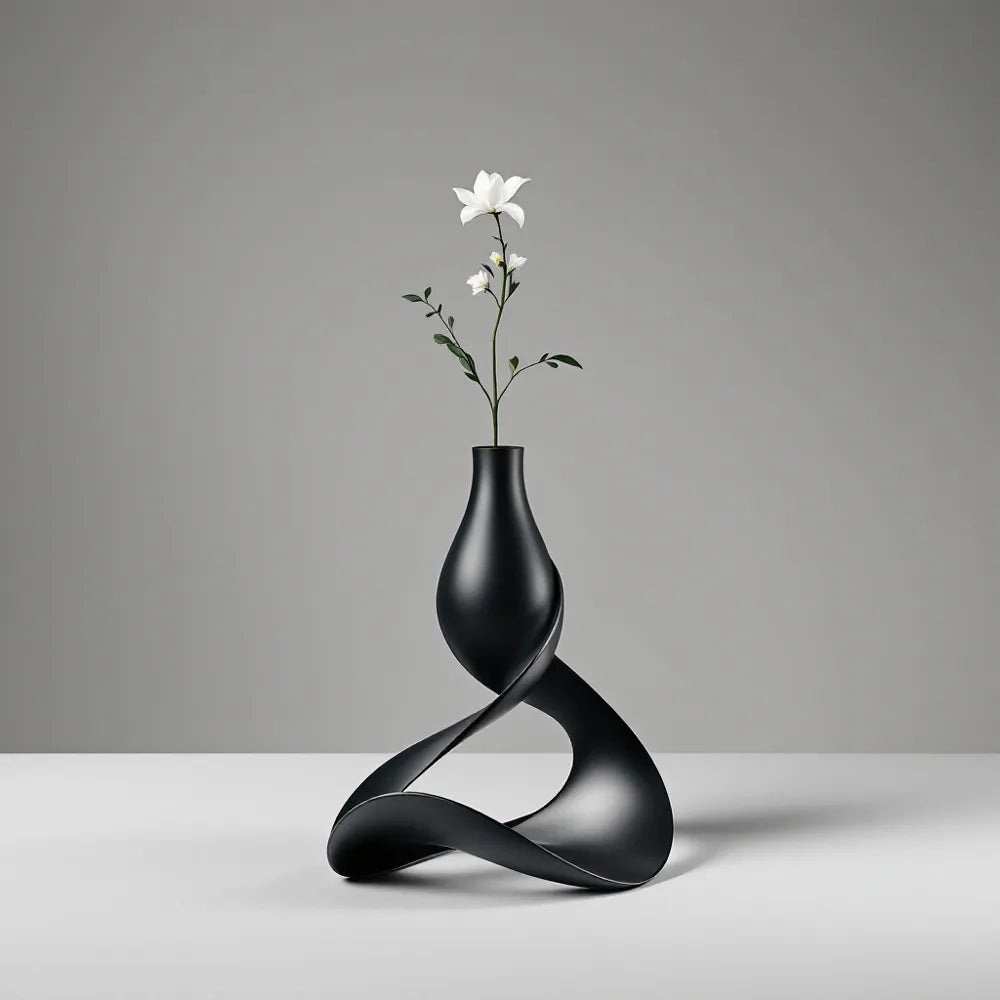 ⚫ Serpentine Sculptural Design: A stunning vase that appears to grow from a fluid, twisting, Mobius-like base, creating a sense of graceful motion.